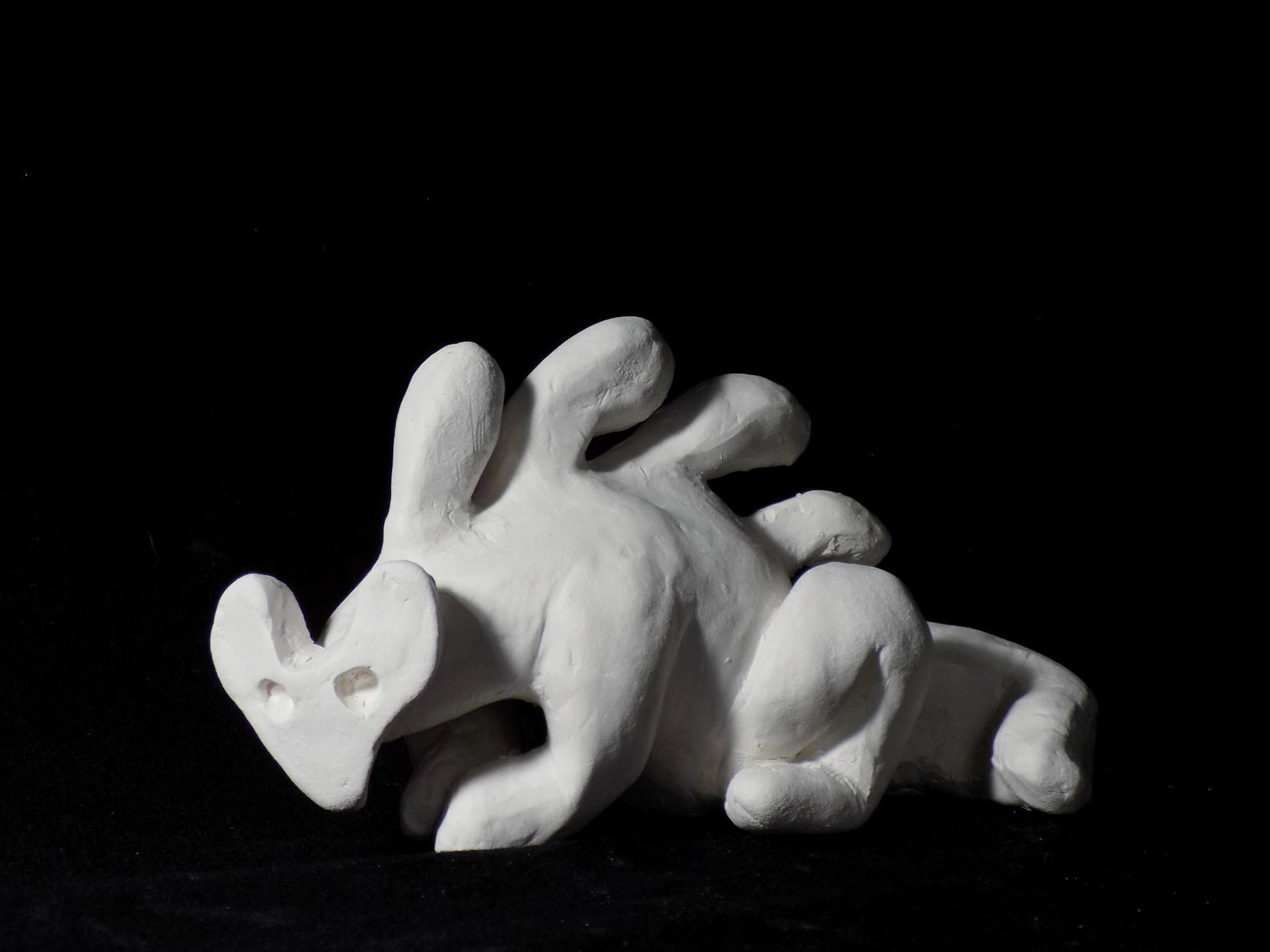 Alongside assisting with general construction, I was responsible for designing a series of woodland spirits in physical and digital incarnations to populate the space. I created 50 unique woodland spirits out of slip-cast and hand-built ceramic stoneware, and I applied individual patterns to each with a UV-reactive marker. These creatures were tucked away in every corner of the exhibit, peaking out behind rocks, through tree branches, and around mushrooms. Armed with UV flashlights, viewers were encouraged to see if they could locate all 50 spirits as the eyes and patterns would suddenly appear under blacklight in the shadows.